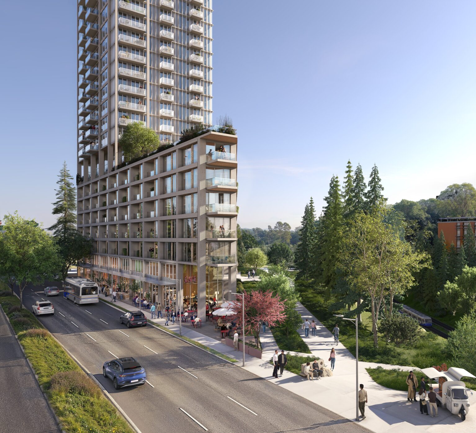 A rezoning application has been submitted for a 32-storey purpose-built rental tower at East Broadway and Victoria Drive. The proposal includes 352 secured rental homes—from studios to three-bedrooms—with 71 below-market units, along with ground-floor retail and family-friendly amenities. Steps from Commercial–Broadway Station and the Central Valley Greenway, the project offers unmatched regional connectivity in one of Vancouver’s most vibrant neighbourhoods.